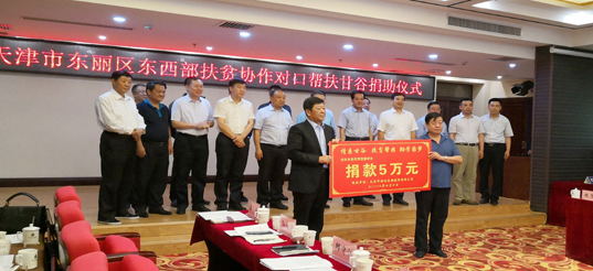 赢搏线上平台向帮扶甘谷县捐款五万赢搏线上平台董事长崔洪金随天津市东丽区区委书记夏新,副区长李光华,区政协...