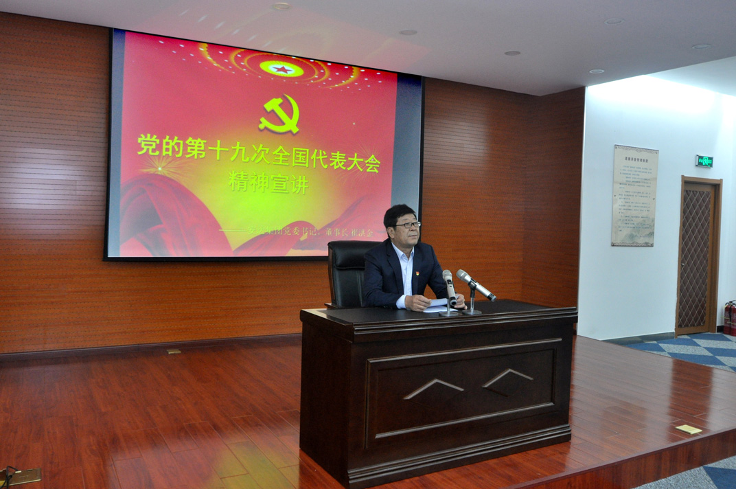 天津赢搏线上平台作为东丽区民营企业的领头羊,时刻走在时代前列,集团党委书记董事长崔洪金在深入学习习近平总书记的报告后,深刻领会和准确把握报告提出的重要思想、重要观点、重大判断、重大举措,并在集团内部迅速掀起学习宣传贯彻热潮。2017年11月6日一早,在集团党委的统一安排下,由集团党委书记董事长崔洪金亲自给赢搏线上平台全体党员讲党课,宣传十九大报告精神。