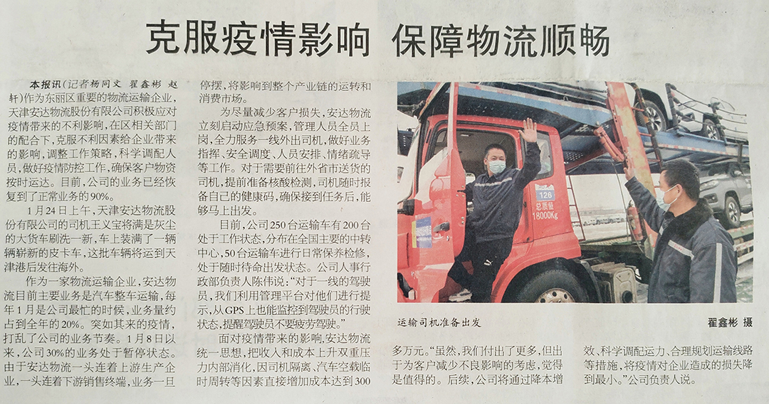 面对疫情带来的影响,安达物流统一思想,把收人入和成本上升双重压力内部消化,因司机隔离、汽车空载临时周转等因素直接增加成本达到300多万元。“虽然,我们付出了更多,但出于为客户减少不良影响的考虑,觉得是值得的。后续,公司将通过降本增效、科学调配运力、合理规划运输线路等措施,将疫情对企业造成的损失降到最小。”公司负责人说。