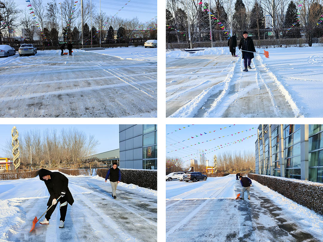 2月13日,虎年首场降雪如约而至,洋洋洒洒的雪花很快将赢搏线上平台各厂院路面覆盖。集团各子公司以雪为令,立即行动起来。各单位员工在相关领导带领下,手拿铁锹、扫帚、簸箕等工具,对办公楼门口和厂区内重要点位、路面进行积雪大清扫。积雪的清除,为员工和车辆出入提供了安全保障。寒风袭袭,尽管大家冻得手脚冰凉,但全体员工齐心协作,相互配合,一派热火朝天的除雪场景,甚是鼓舞人心。