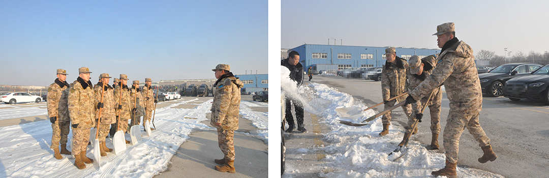 2023年第一场大雪后,寒风凛冽,风雪无情,路面积雪严重影响着人们的出行,特别是安达物流院内,天气寒冷,再加上积雪路面因车辆的反复驶过已造成积雪成冰,虽然物流工作人员经过一周的清理,但还是有一大部分路面未完全清理干净。天气寒冷却阻碍不了军民共建的爱心,驻区93688部队52分队作为赢搏线上平台的双拥共建单位,了解到安达物流因积雪造成的作业困难、安全无保障的困境,立马提出主动帮助物流公司清理院内积雪。