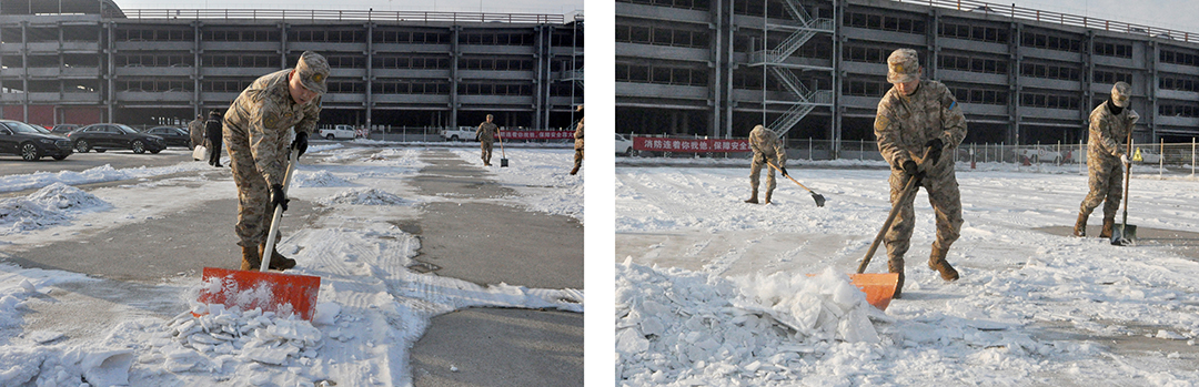 部队战士在相关领导的带领下于12月25日下午来到安达物流公司,经过工作人员对目前困难的详细描述,部队战士合理规划、严密部署、分工分组合作,有除冰的,有铲雪的,在安达物流工作人员和部队战士的共同努力下,用一下午时间高标准、高效率共同完成扫雪铲冰的工作。