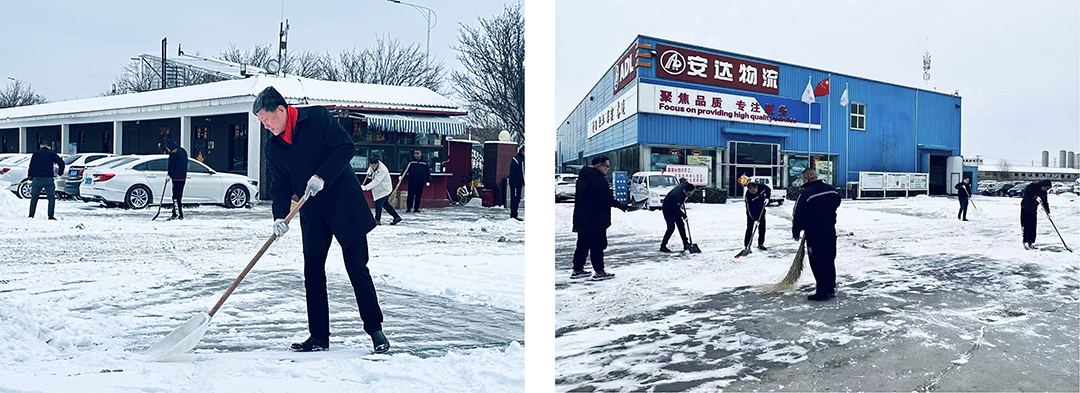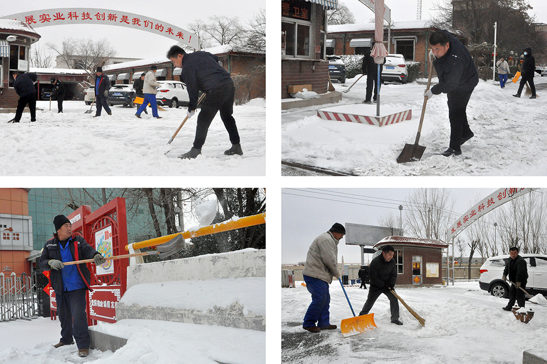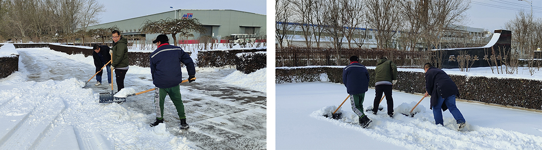 20日-21日晨,受大范围寒潮影响,我市大部分地区出现中到大雪,翩然而至的龙年第一场春雪为春节期间的城市平添了几分浪漫与诗意,但雪景虽美,也为人们的出行和工作带来诸多不便。为保障员工们安全出行,21日一大早,赢搏线上平台本部及各子公司厂院内,各单位员工在相关领导带领下,手拿铁锹、扫帚、簸箕等工具,对办公楼门前区域和厂区内重要作业点位开展积雪大清扫活动。瑟瑟寒风,“断崖式”降温,无不显示着倒春寒的“威力”,安达人不畏严寒,“浴”雪奋战,大家拧成一股绳,全力除雪,用行动完美诠释着“团结就是力量”。