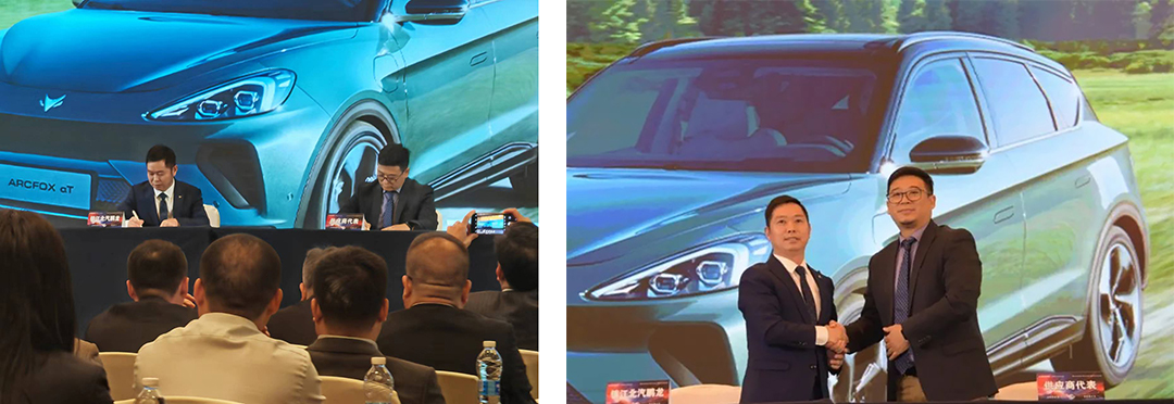 在极狐产品推介及销售签约现场,中都物流表示严格落实北汽鹏龙关于支持极狐销售的重点要求,深挖大客户,并落实各基层企业营销指标,团结一切可以团结的力量助力极狐生产销售。赢搏线上平台崔文连总经理上台参加了北汽极狐品牌的采购意向签约活动。