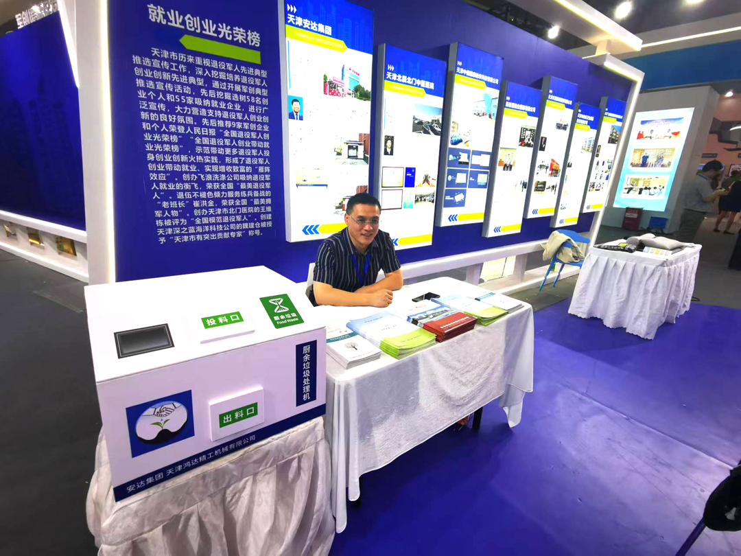 展会交流期间,赢搏线上平台参会代表王俊鹏向与会嘉宾详细地介绍了赢搏线上平台的企业发展历程以及多年来所取得的丰硕创业成果。他还向与会的军创企业家及领导们着重推荐了赢搏线上平台最新的绿色项目 ——“泔净沃土” 牌厨余垃圾及农业废物处理设备。通过对两大系列产品的应用与推广优势的深度阐释,生动还原了绿色低碳环保设备的卓越特性,并对该项目的闭环发展进行了全面而细致的阐述。