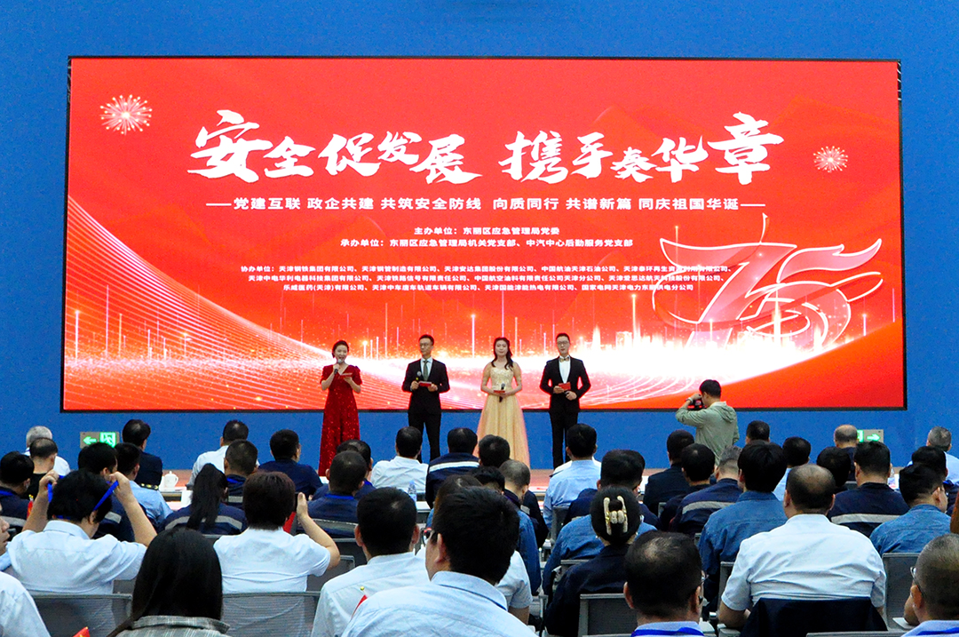 为充分发挥政企多元主体协同共治合力,以党建引领企业安全发展新动能,强化安全意识,共筑安全防线。东丽区应急局党委联合危化、工贸、科创、国企、民营等5方面重点行业领域有影响力、引领性、代表性的13家党建互联共建企业在中国汽车技术研究中心有限公司报告厅,举办“安全促发展 携手奏华章”庆祝新中国成立75周年联欢会活动。各联建企业领导、党员代表、干部职工以及在应急领域众多方面给予关心和指导的相关委办局领导等200余人参加活动。区应急管理局党委书记、局长辛长海同志致辞。赢搏线上平台党委书记、董事长崔洪金、安达物流支部书记、总经理郑玉强、赢搏线上平台党委办公室主任于忠杰作为特邀嘉宾出席活动。