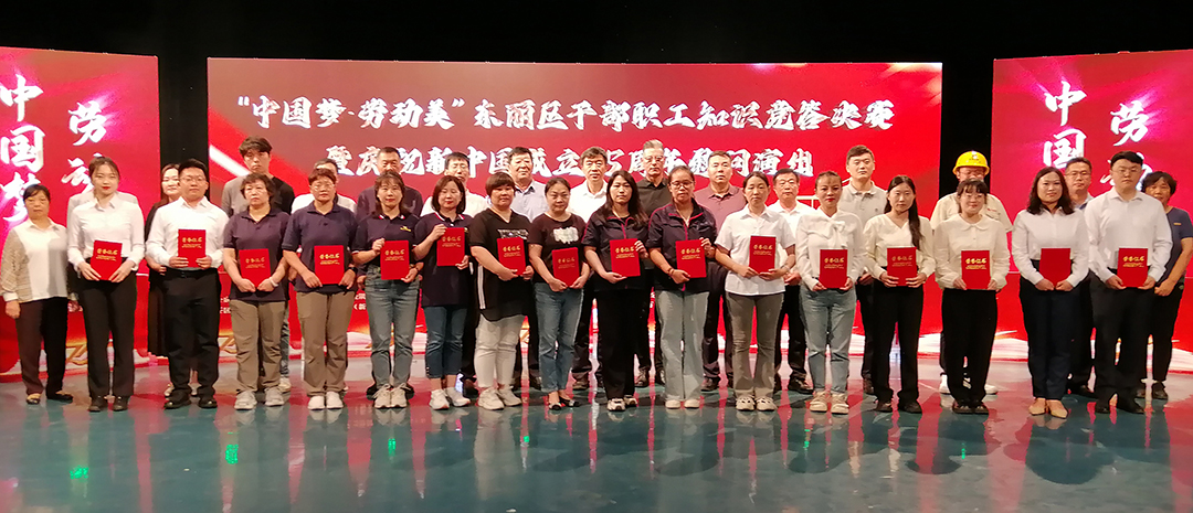 活动以歌伴舞《时代号子》开场,唱出了东丽职工的豪情和壮志,唱响劳动最伟大、劳动最光荣。随后,天津金隅混凝土有限公司工会等8支代表队,进行党的创新理论知识竞答,最后在颁奖环节,崔洪金为获得铜奖选手颁发证书,并合影留念。