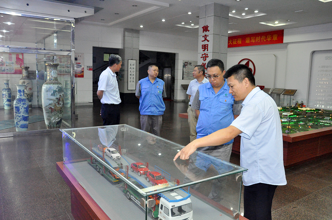 仪式结束后,郑玉强总经理带领杨部长一行实地考察了为新能源车队配套建设的智能充电站和奔驰立体仓库。在智能充电站,郑玉强介绍了高效便捷的充电管理系统;在奔驰立体仓库,他详细讲解了立体库智能出入库管理流程,展现了安达物流在仓储智能化方面的实力。随后,杨部长一行参观了赢搏线上平台产业文化展厅。展厅内,历史照片、实物展品与数字沙盘相结合,全方位展示了赢搏线上平台的发展历程、企业文化,以及安达物流在绿色转型方面的战略布局与创新实践,给参观嘉宾留下了深刻印象。